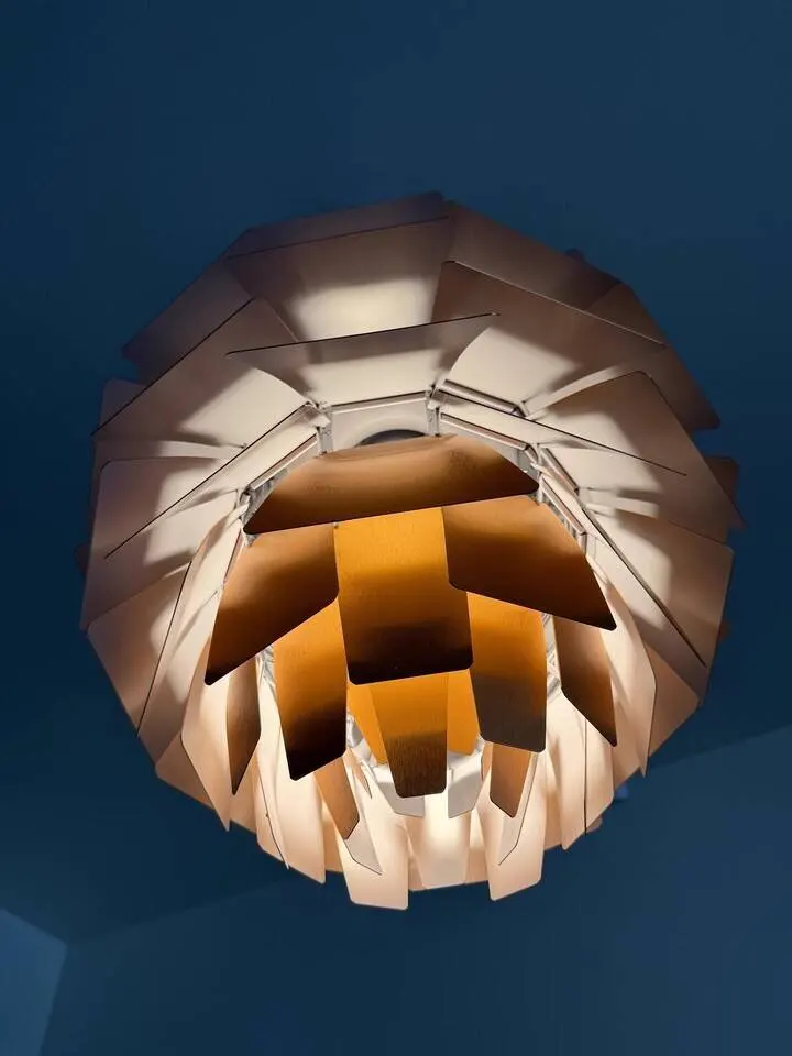 A contemporary designer-inspired pendant lamp featuring a refined Artichoke-style layered structure. Each metal “petal” is arranged to diffuse soft ambient light, creating a warm architectural glow ideal for dining areas, living rooms, and modern interior spaces. This fixture functions both as a lighting element and a bold decorative centerpiece.
