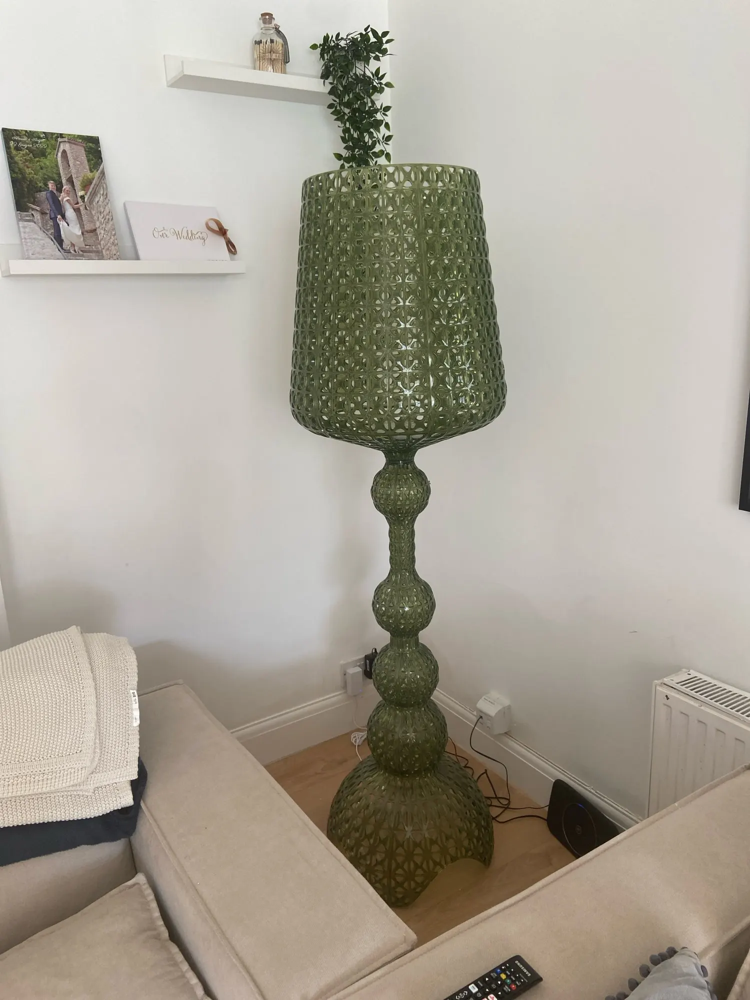 A contemporary acrylic lamp designed to function as a sculptural statement piece with soft ambient illumination.