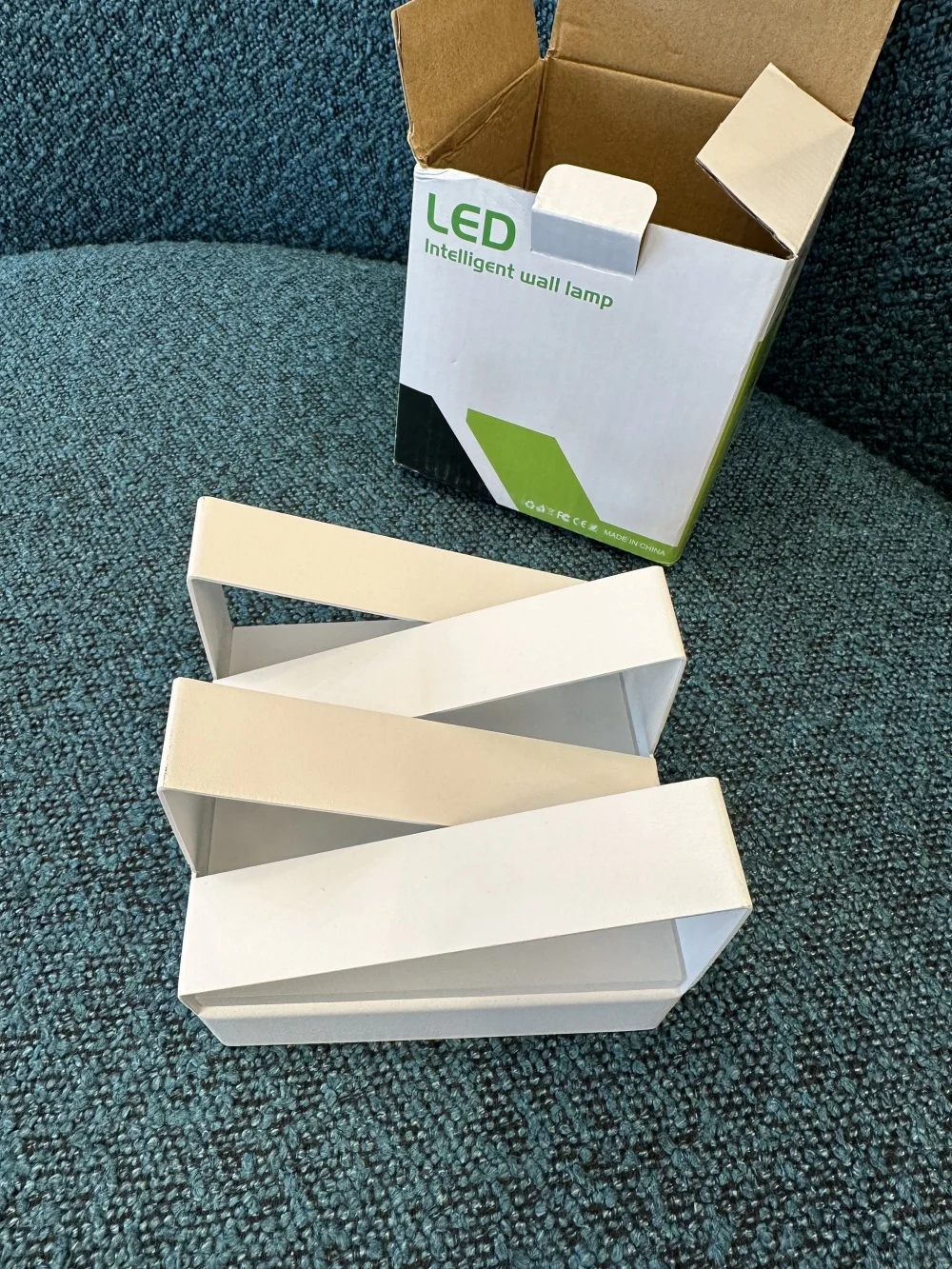 A sleek architectural wall lamp designed for both indoor and outdoor spaces. With a geometric silhouette, durable iron body, and soft indirect LED lighting, this fixture enhances hallways, staircases, living rooms, terraces, and building exteriors with clean modern illumination.
