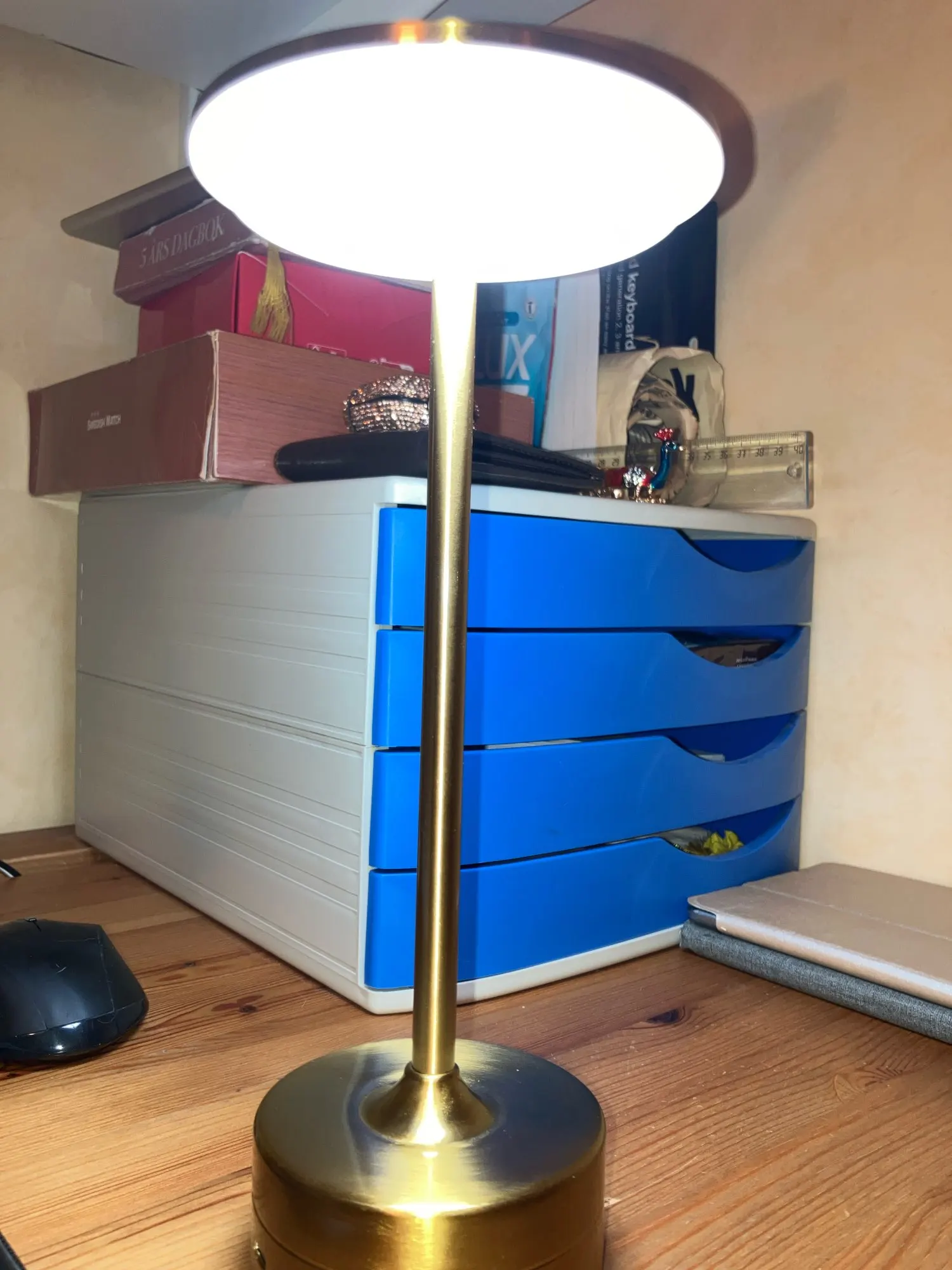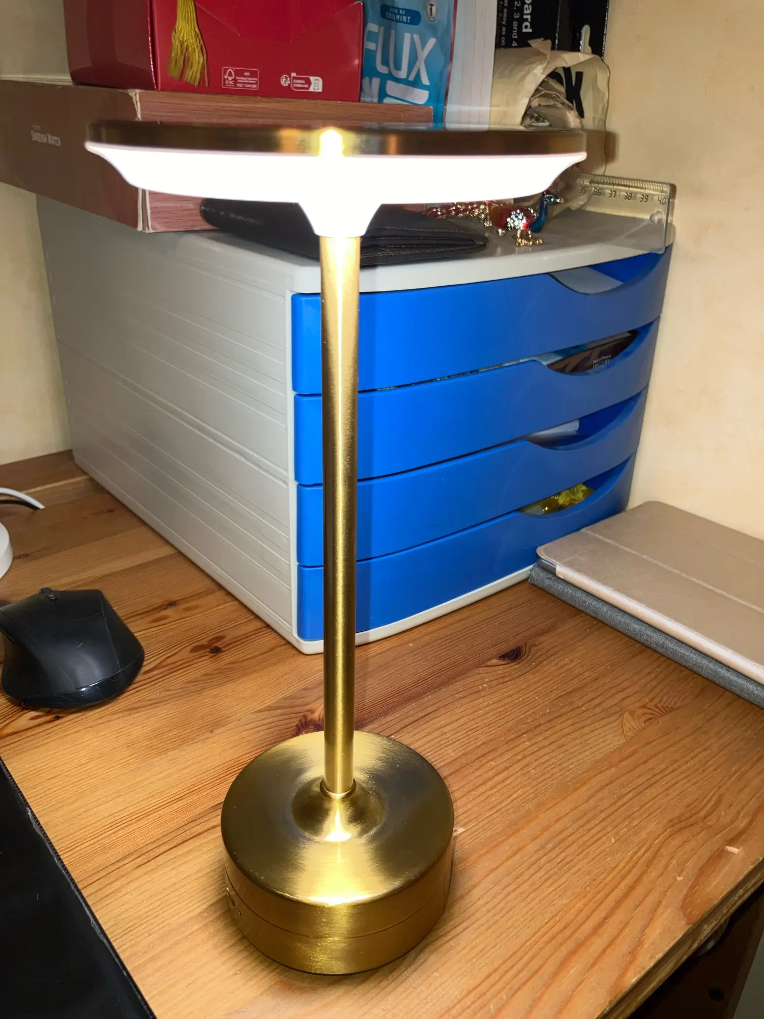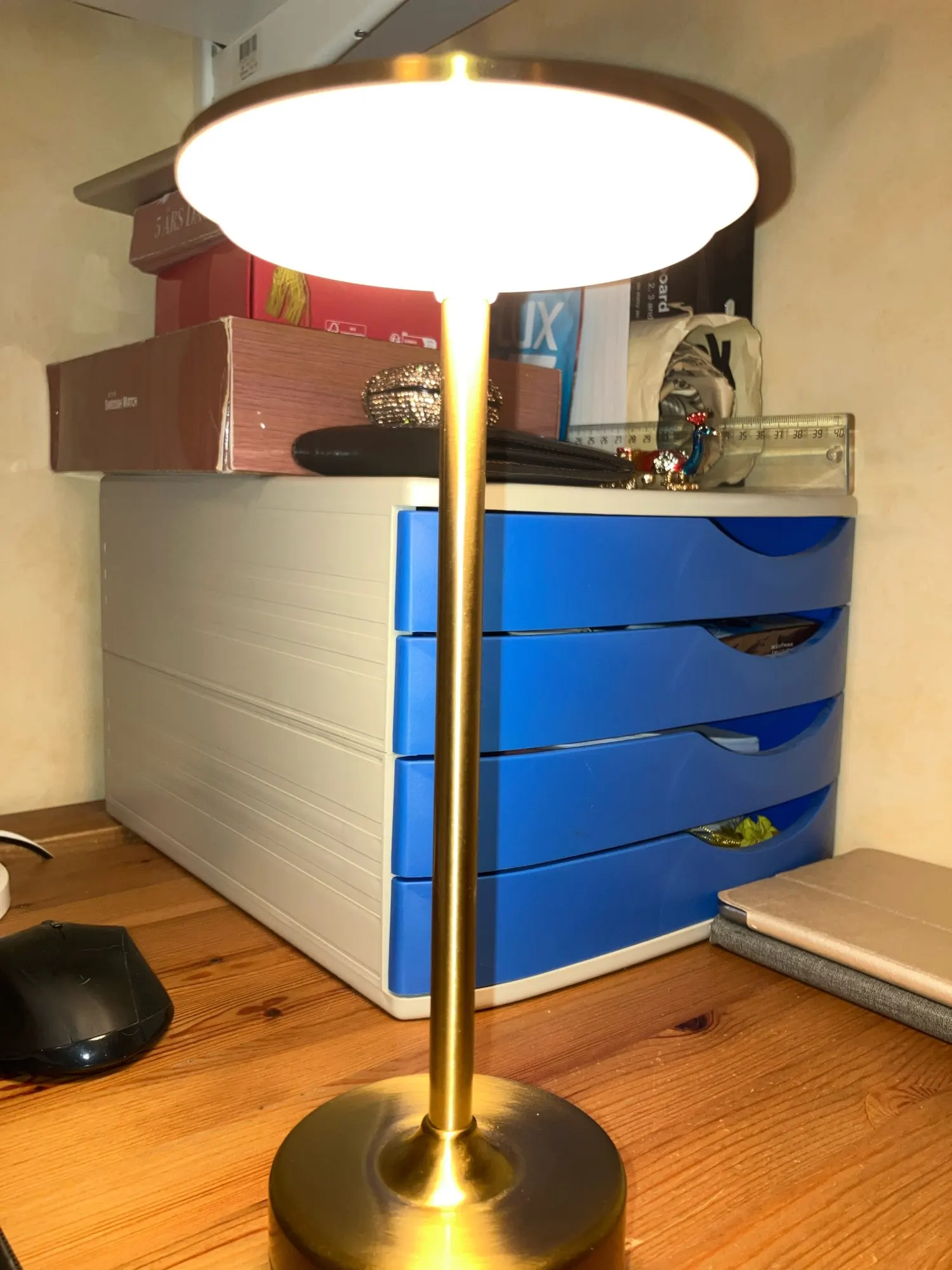 Magnificent, good value for money, very good quality of materials. I recommend it and am very satisfied. At first, I thought it wasn't working because when you turn it on, it blinks and then turns off, but... that's normal: IT'S TOUCHSCREEN so it blinks to indicate it's on, so tap on the hat to change the light temperature. Received and charged three days ago, the battery seems to have lasted since the first charge.