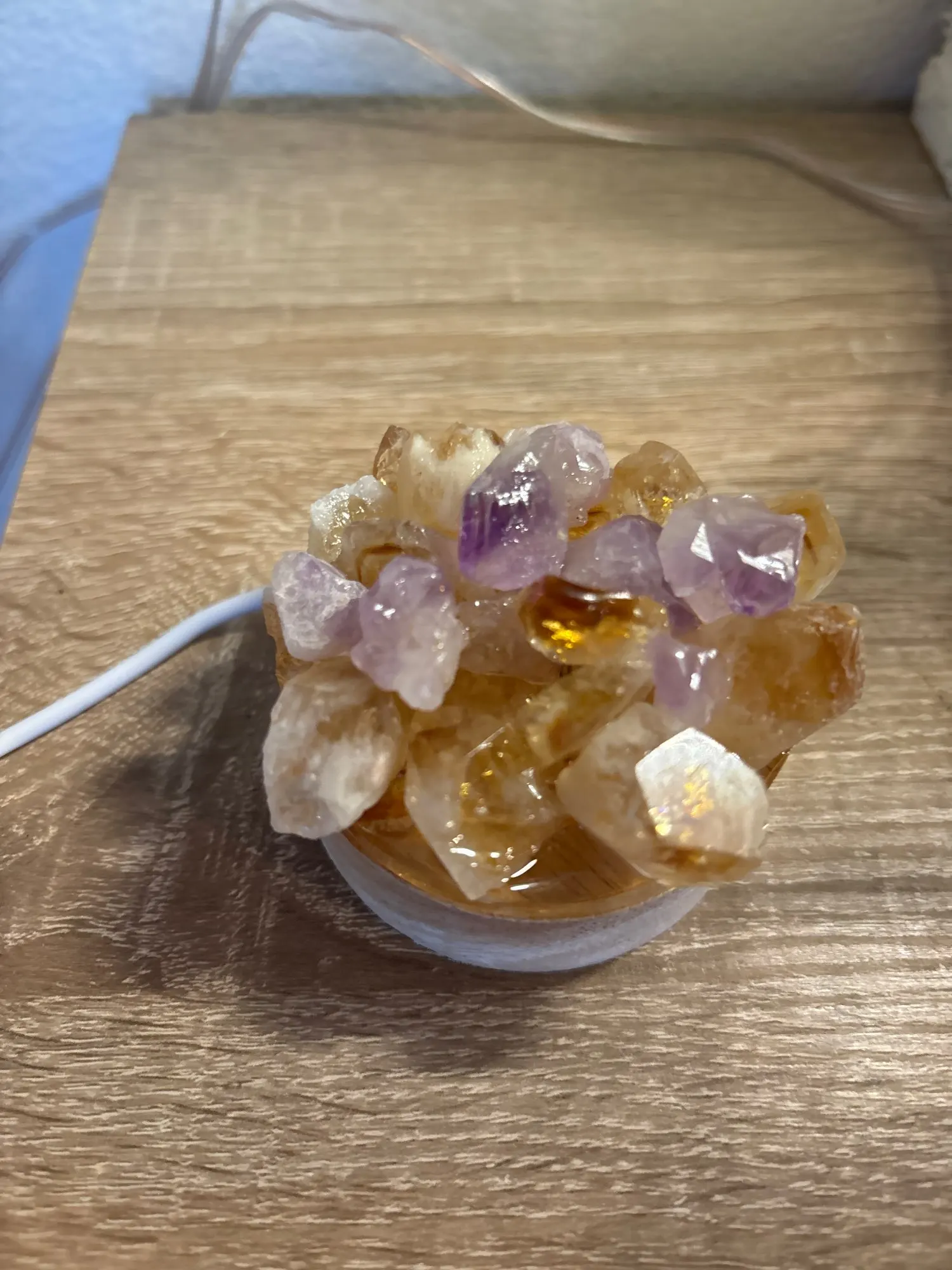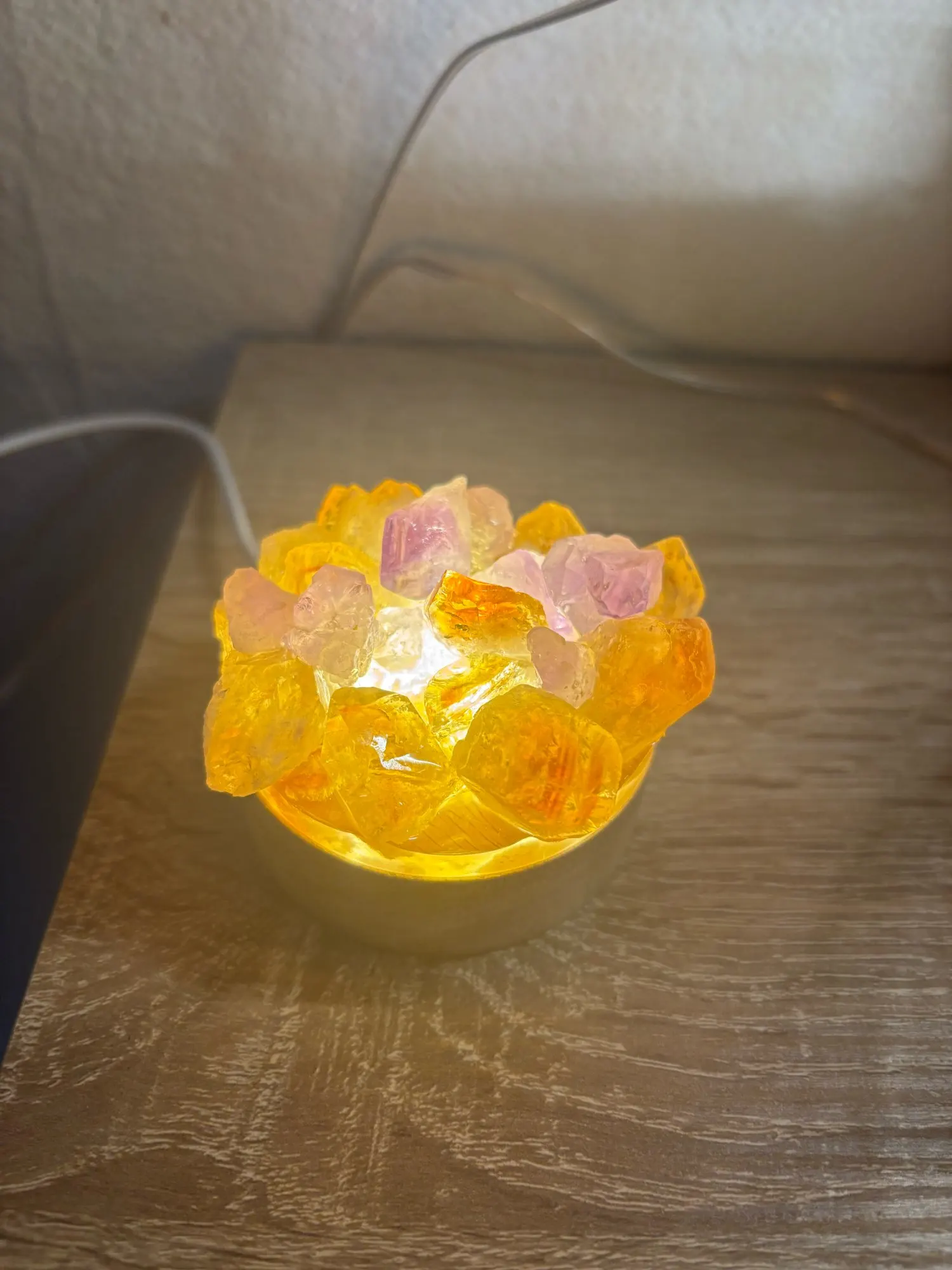 - Natural crystal stones: each lamp features genuine minerals with unique color and structural variations.