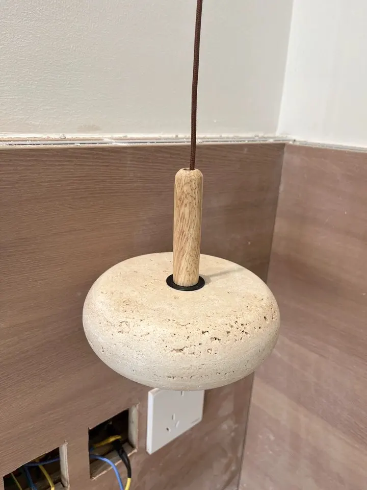 A refined pendant lamp crafted from natural stone and wood, designed to bring warm, organic elegance to contemporary interiors. Its smooth rounded silhouette and soft textured finish create a calming ambiance, making it ideal for bedrooms, dining rooms, hallways, and minimalist interior spaces.