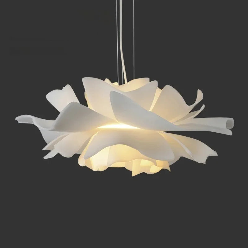 A striking sculptural pendant light inspired by the delicate form of blooming petals. Designed to act as both a light source and a visual centerpiece, this chandelier brings soft elegance and modern artistry into residential and commercial interiors.